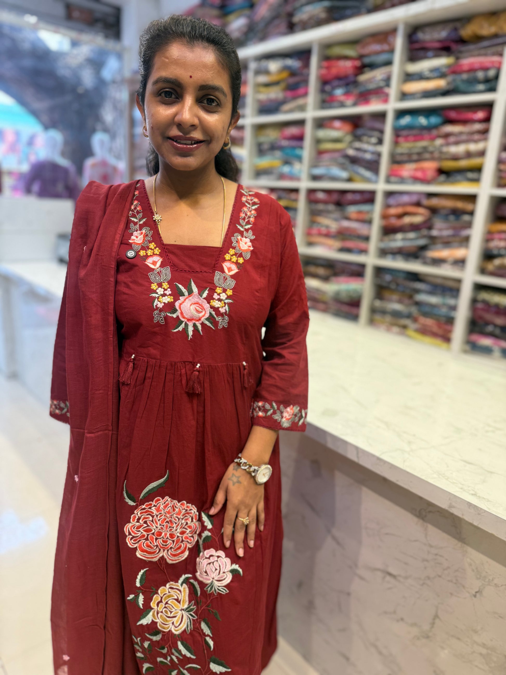 A-line Embroidery Work Kurti With Pant and Dupatta