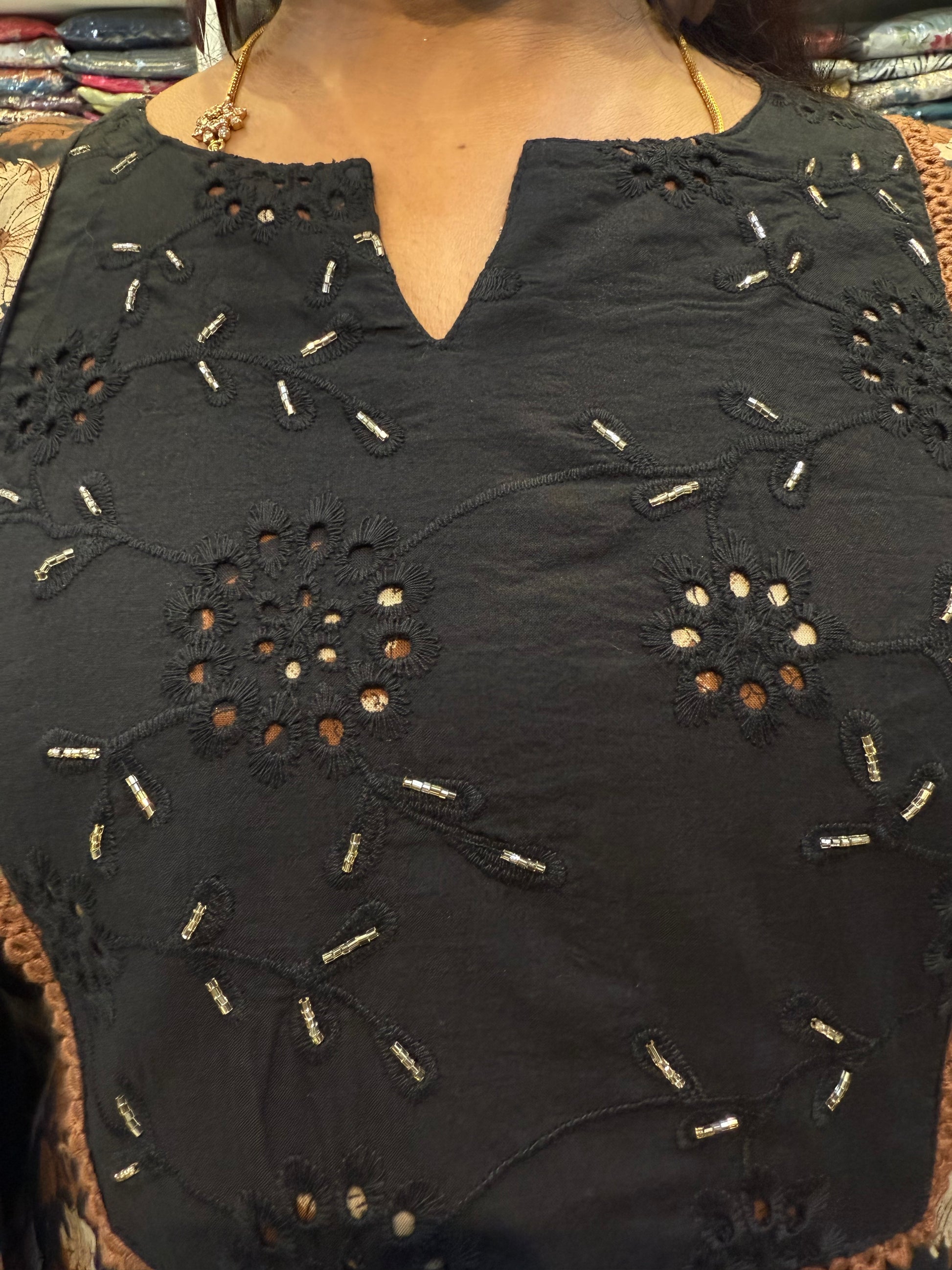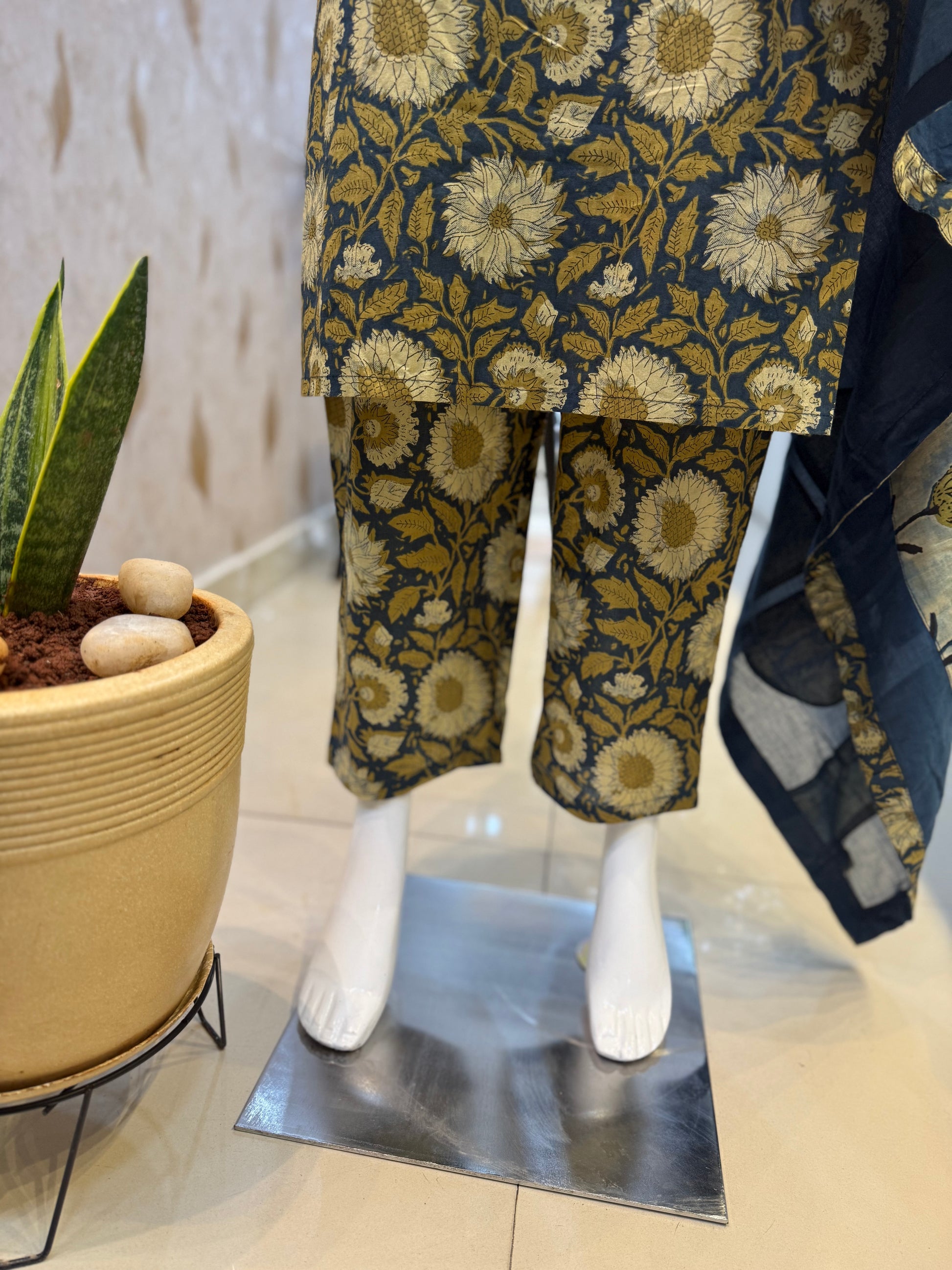 Applique Floral Printed Pure Cotton Kurti with Pant and Dupatta