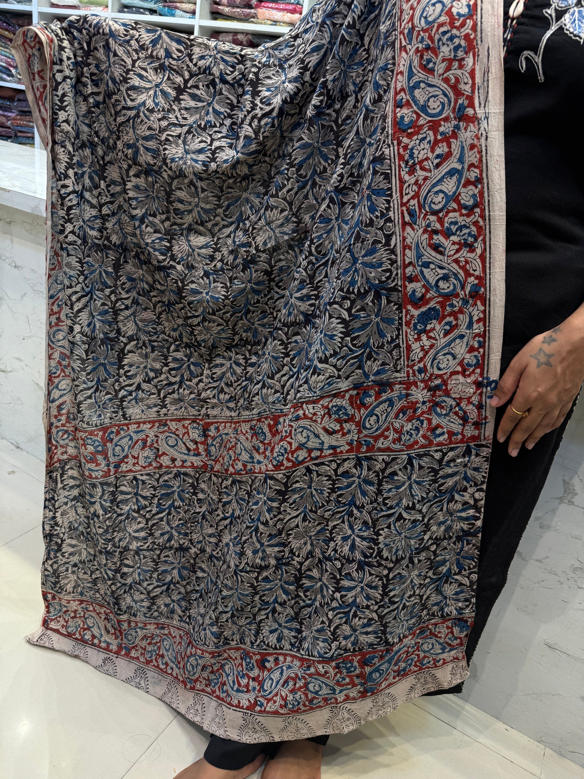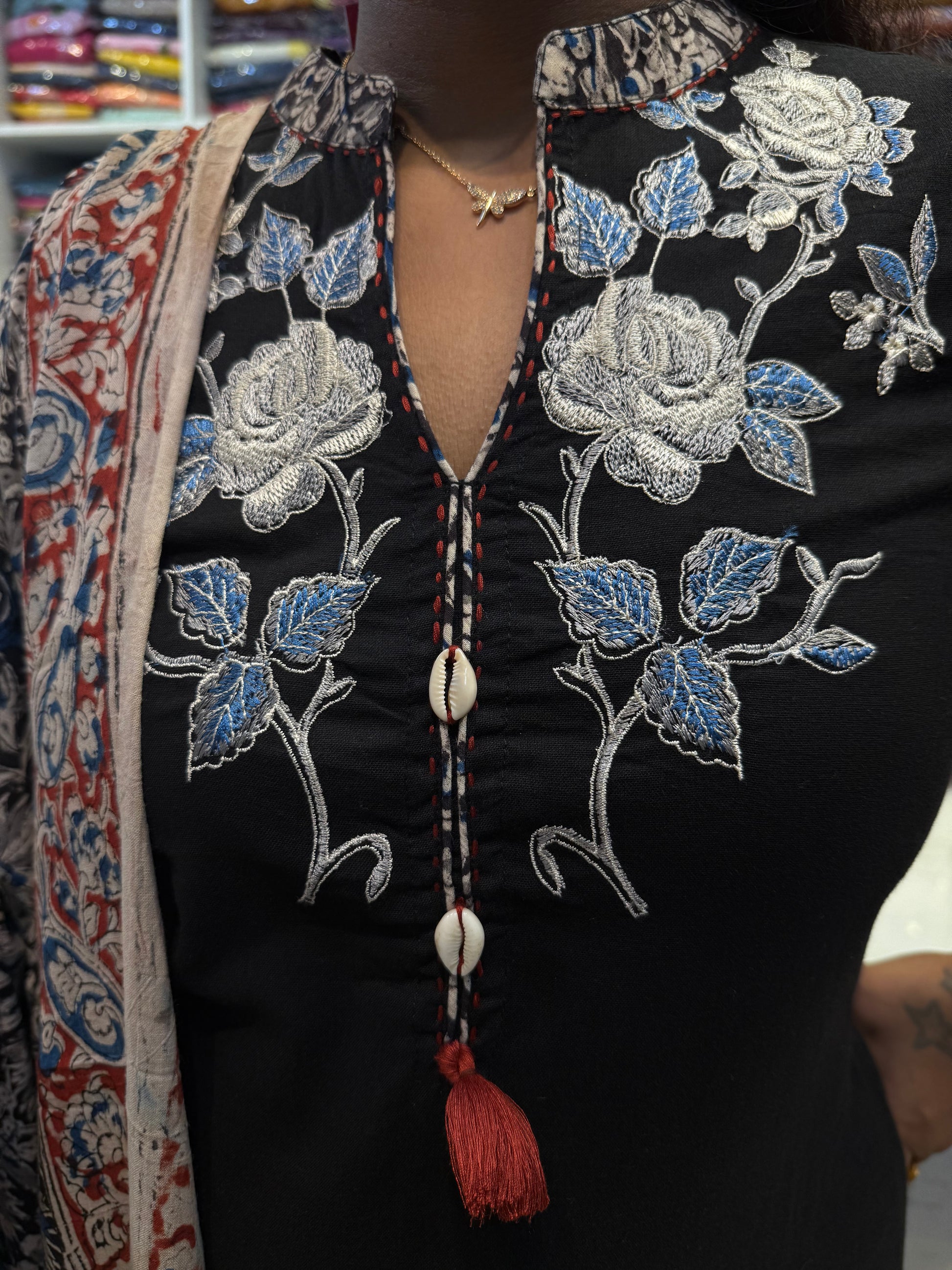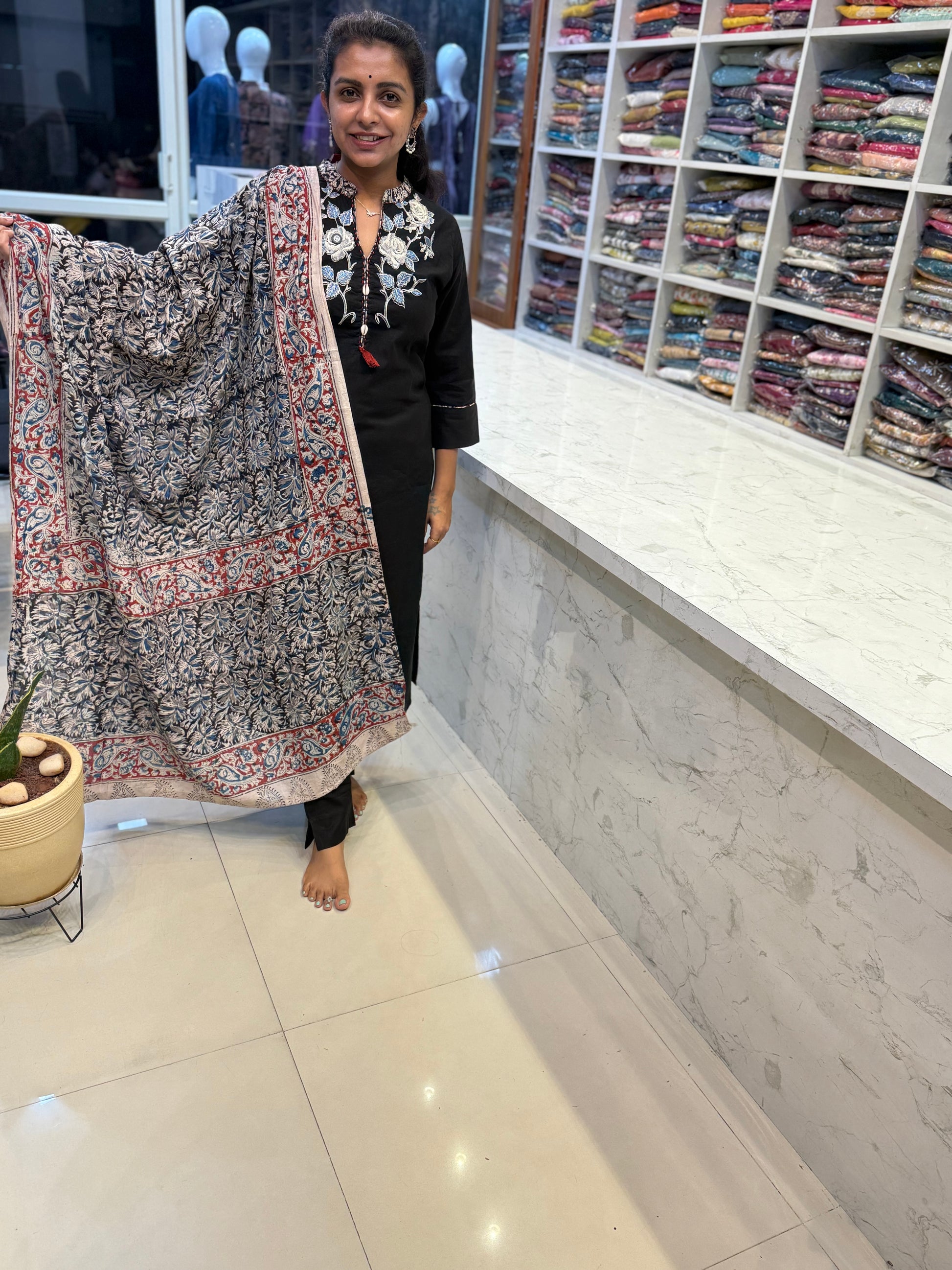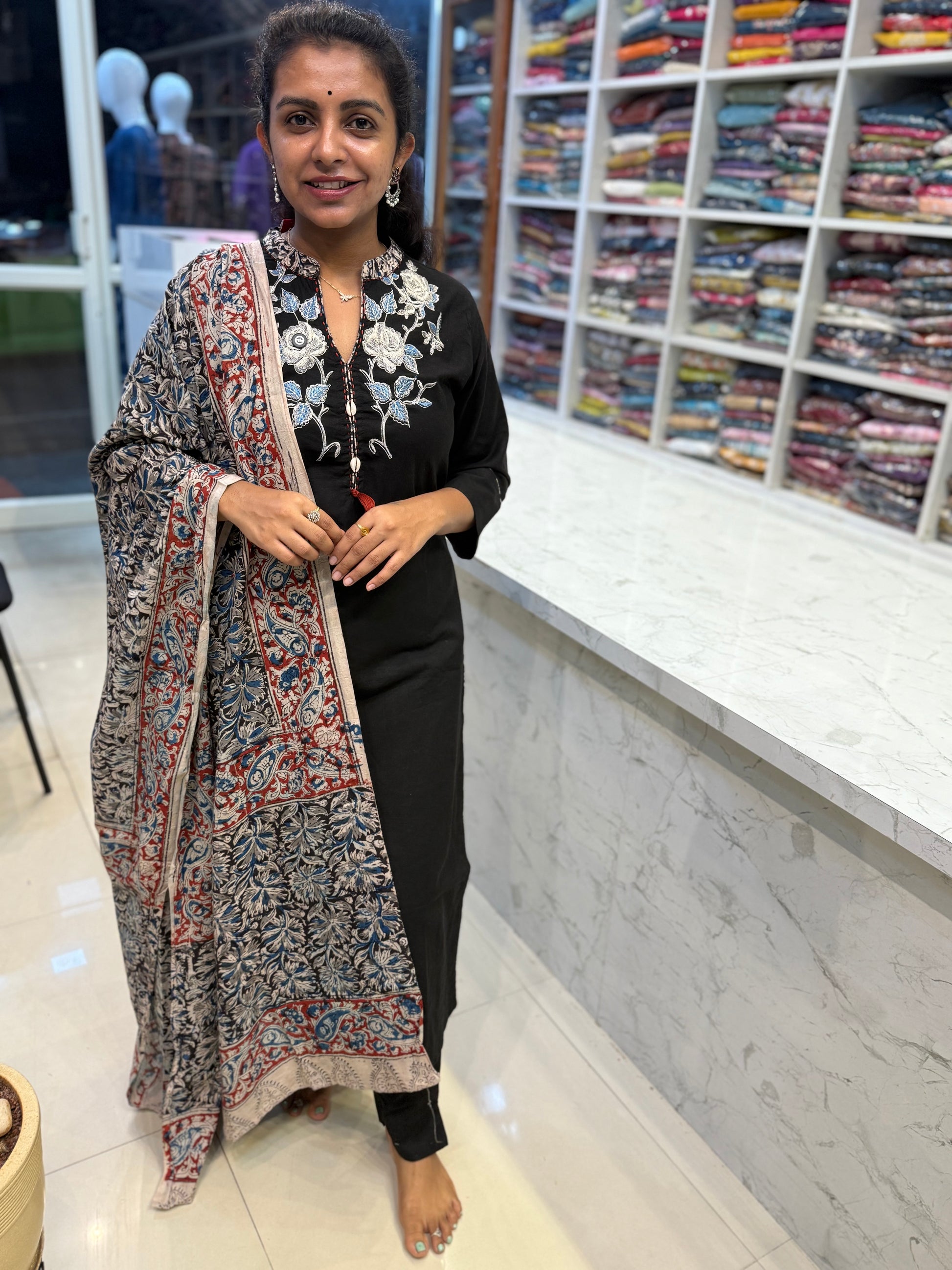 Black Kalamakari Pure Cotton Kurti with Pant and Dupatta