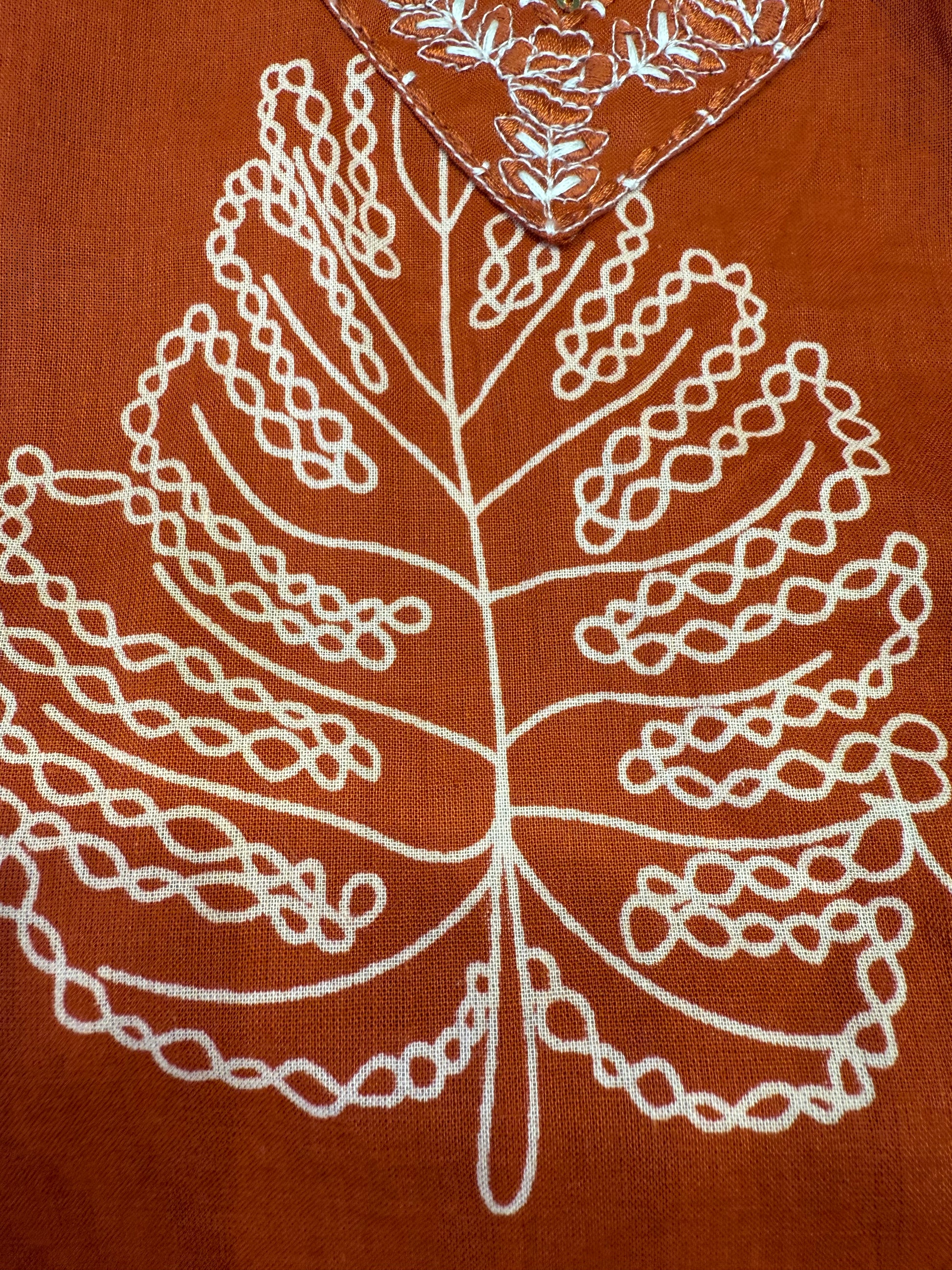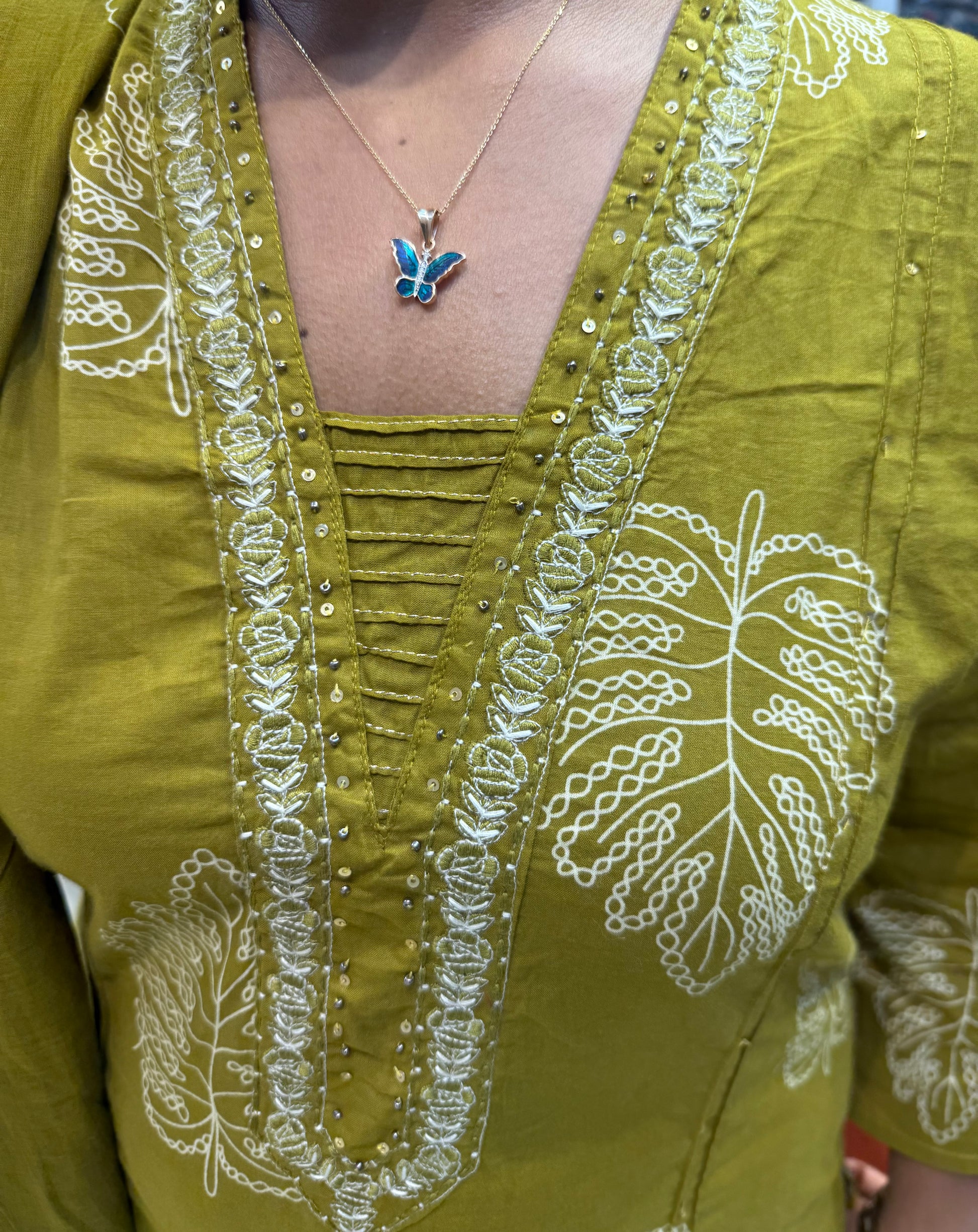 Leaf Printed Cotton Kurti With Pant and Dupatta