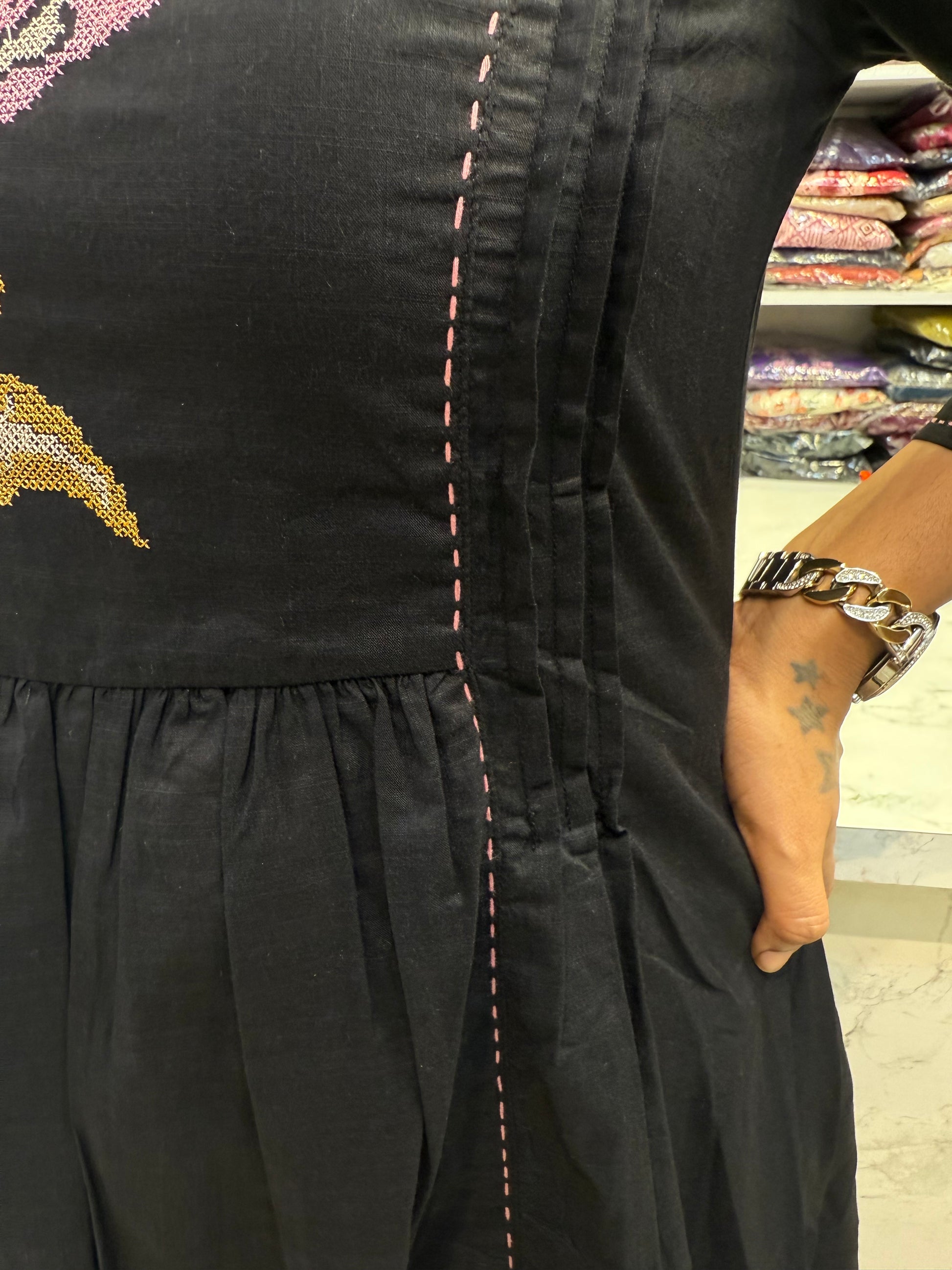 Crosstich Work in Kurti, Kurti has printex detail with minimal thread embroidery