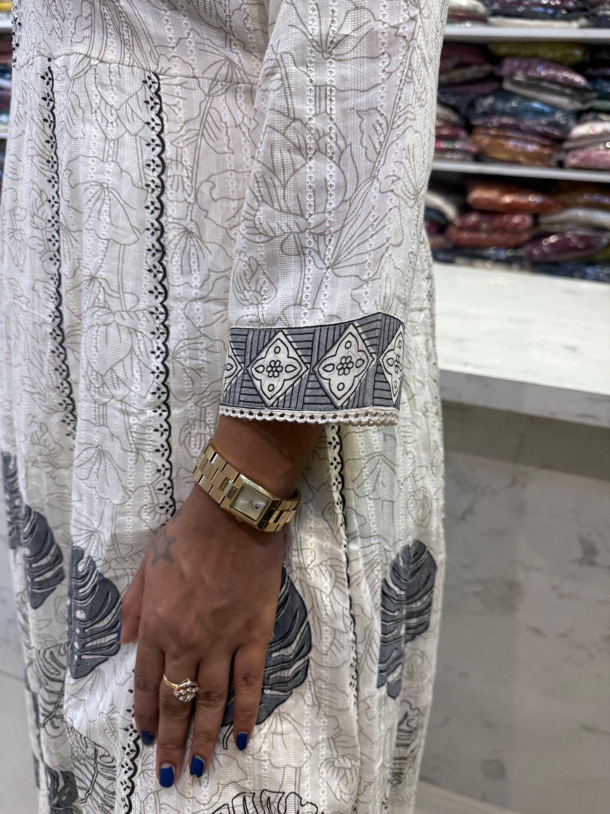 Pure Cotton Half White Hand Work Embroidery Kurti With Pant and Dupatta