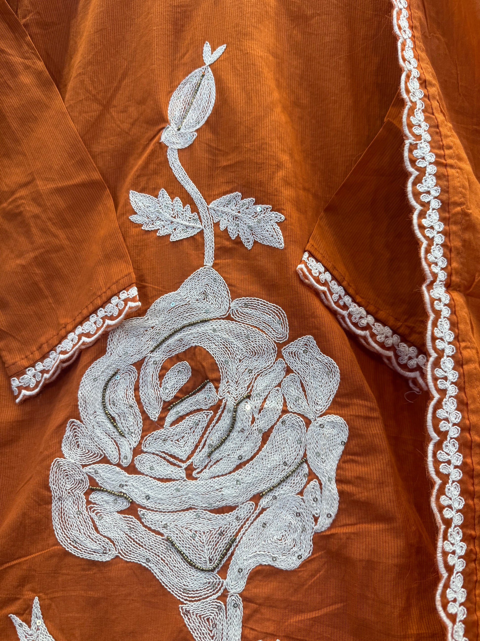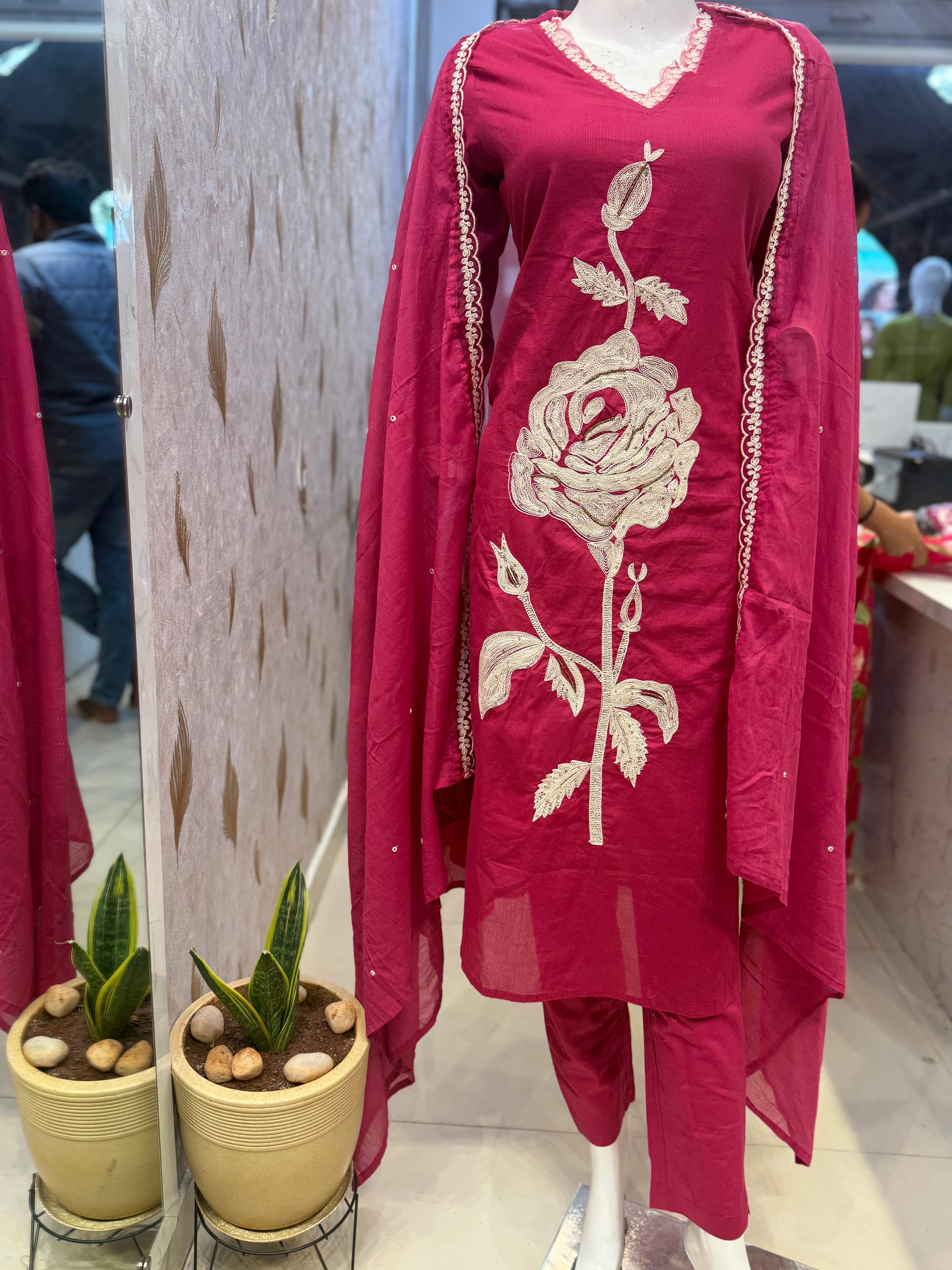 Pure Mul Cotton Lace Embroidery Kurti With Pant and Dupatta